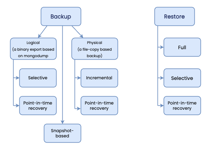 2.1.0 (For PSMDB versions 4.2.24-24, 4.4.18-18, 5.0.2-1, 6.0.2-1 and higher) | Save on disk space for large backups where the data needs to be frequently backed up | Sharded clusters and non-sharded replica sets | Yes | No |